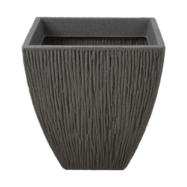 Nowoczesna, kwadratowa osłonka na kwiaty wykonana z mocnego tworzywa imitującego kamień o wysokości 42 cm, boki 40x40 cm