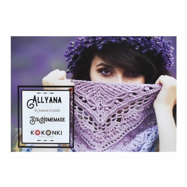 Wzór na chustę autorstwa www.sishomemade.pl ze zdjęciami z pięknej sesji fotograficznej. Wzór: Allyana Shawl Sugerowane materiały: Kokonek Merino 547 (1400m/400g) Szydełko 4 mm Igła Format: ulotka 8 stron w formacie A5 Język: polski i angielski Wzór jest odpowiedni dla osób średnio zaawansowanych i zaawansowanych. Wzór zawiera tylko schemat graficzny, nie zawiera opisu. Wzór na chustę Allyana chroniony jest prawami autorskimi. Żadnej części wzoru nie wolno rozpowszechniać, udostępniać i sprzedawać. Elektroniczna wersja wzoru do nabycia tutaj www.sishomemade.pl