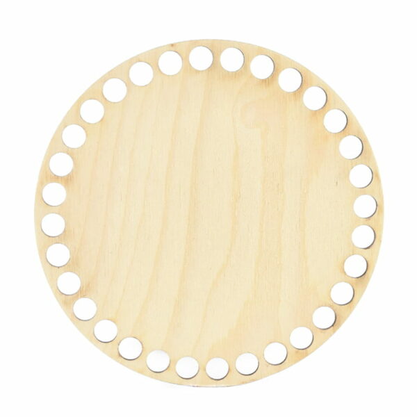 Baza dno koszyka do obrabiania sznurkiem, wykonana ze sklejki o grubości 3 mm. Do tej bazy polecamy sznurek bawełniany lub Macrame Cotton. Do przerabiania polecamy szydełko w rozmiarze 4mm, ale do przerobienia pierwszych rzędów zalecamy użycie mniejszego rozmiaru. Bazy można malować farbą akrylową, bejcą, można je też ozdabiać różnymi technikami, m.in. decoupage. Średnica bazy: 17 cm Średnica dziurki: 7 mm