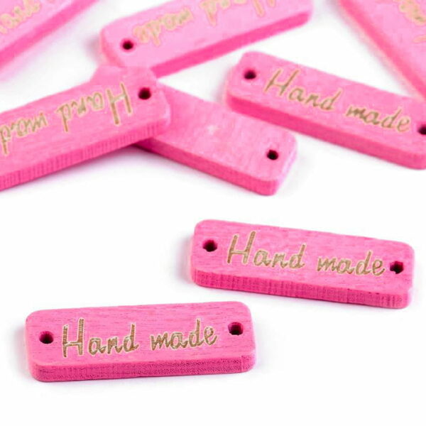 Metka drewniana "Hand made" / róż / 10 x 30 mm / 1 szt.