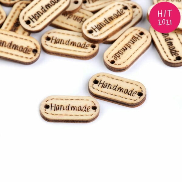 Metka drewniana "Hand made" / beż / 11 x 23 mm / 1 szt.