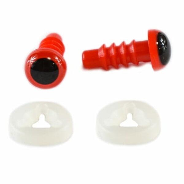 Oczy do zabawek to niezbędny element każdej przytulanki dla dzieci. Oczka są wypukłe, okrągłe, w kolorze czerwono-czarnym. Posiadają bezpieczne mocowanie za pomocą zapinki. W sprzedaży 1 para oczu (2szt) Kolory zapinek mogą się różnić.