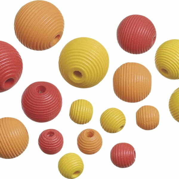 Koraliki drewniane rowkowe / 10-20 mm / żółto-czerwono-pomarańczowe / 20 szt.