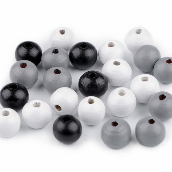 Koraliki drewniane / KULE / czerń-szary-biel / 10 mm / 20 g