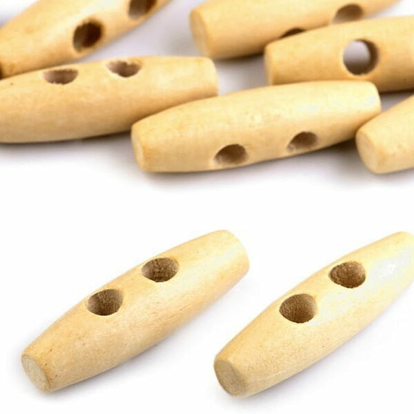 Drewniany lakierowany guzik w naturalnym kolorze w kształcie kołka. Jest świetnym dodatkiem zimowych płaszczy czy swetrów. Średnica dziurki wynosi około 6 mm. Wymiary: 12 x 40 mm Nie zalecamy prać guzików. Cena za 1 sztukę. Zdjęcia produktów są poglądowe i pochodzą ze strony producenta.