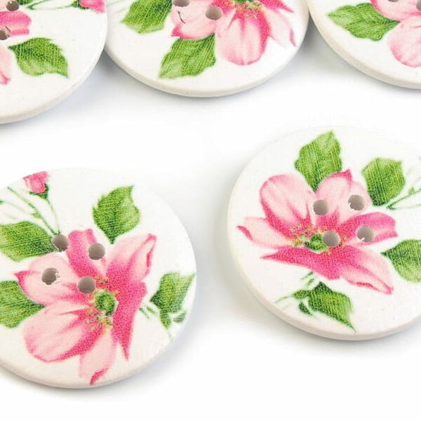 Drewniany guzik z delikatnym motywem kwiatowym. Można go naszyć na swetry, kurtki, sukienki i torebki. Średnica: 38 mm Cena za 1 sztukę. Zdjęcia produktów są poglądowe i pochodzą ze strony producenta.