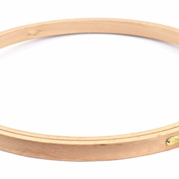 Tamborek bambusowy ułatwiający haftowanie. Tamborek składa się z dwóch obręczy, które zaciskają się, aby utrzymać napięty materiał. Materiał: bambus, metal
