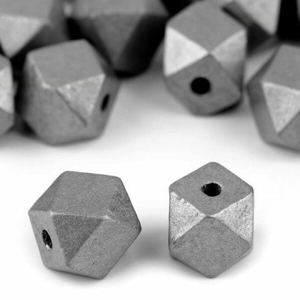 Koraliki drewniane geometryczne / 15 mm / otwór 3mm / srebro / 1 szt.