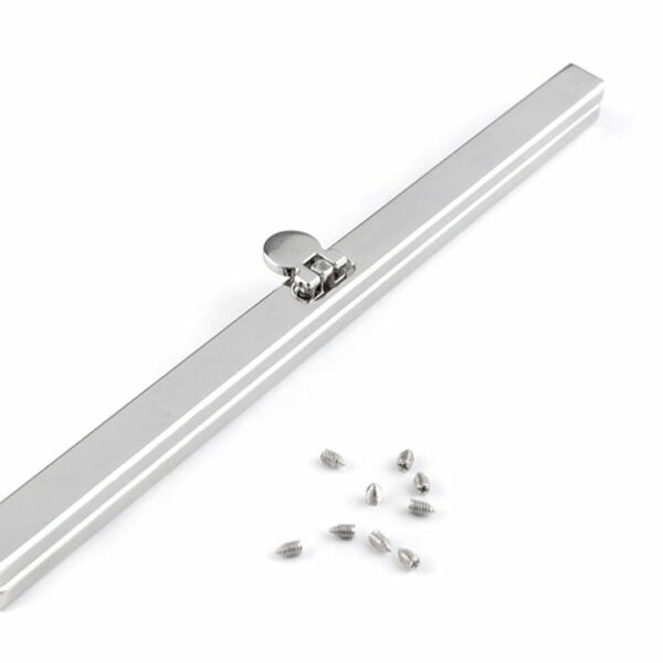 Metalowa ramka z zapięciem do wyrobu torebki. Jest to wkładany typ ramki - materiał wkłada się do środka, mocuje dołączonymi śrubkami (8 sztuk) lub klejem (najlepiej chemoprenowym), następnie kleszczami ściąga się do siebie szczęki ramki. Szerokość: 1 cm Długość: 19 cm Wewnętrzna szerokość ramki do włożenia materiału: 4,5 mm Cena za 1 szt. Zdjęcia produktów są poglądowe i pochodzą ze strony producenta.