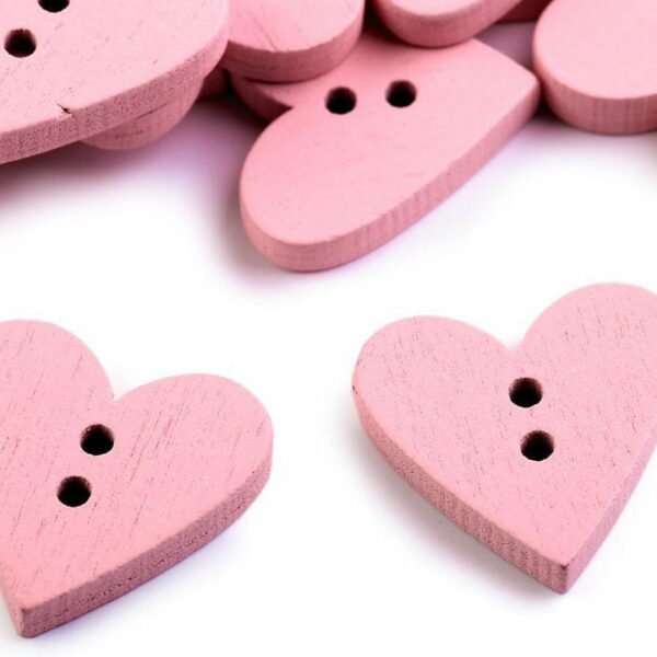 Guzik drewniany / 18 x 19 mm / pudrowy róż / ''Serce''