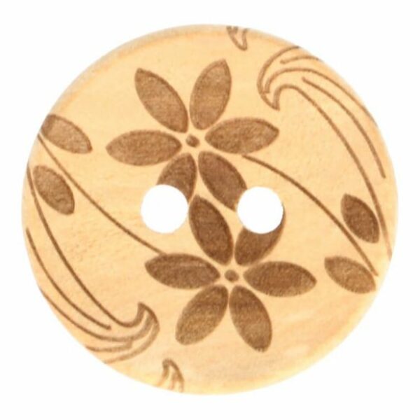 Drewniany guzik w kwiaty. Średnica 26 mm Cena za 1 sztukę