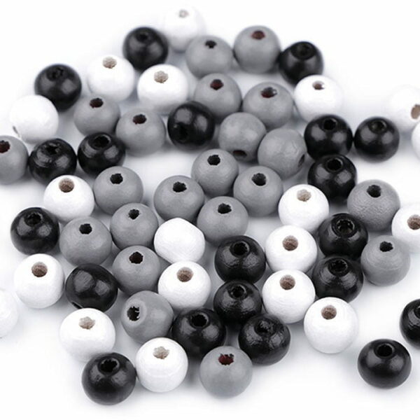 Koraliki drewniane / mix czerń-szary-biel / 8 mm / 20 g