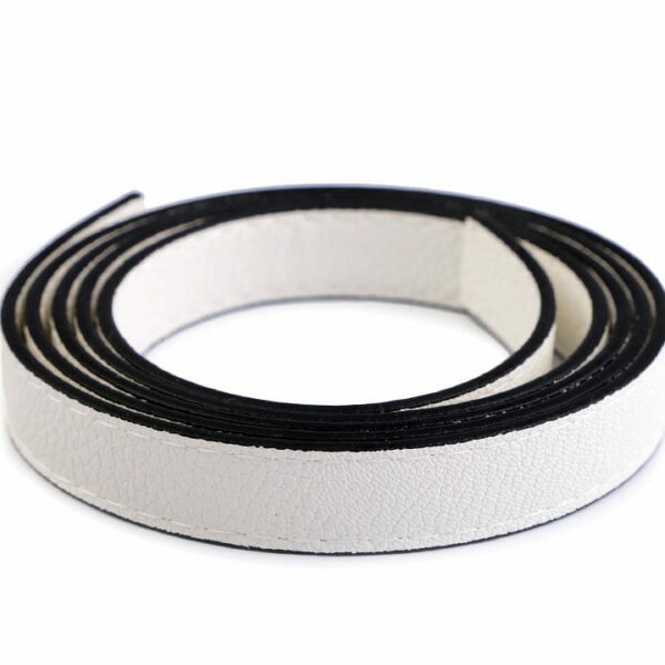 Obszyte rzemyki do wyrobu uszu do torebek mają świetną jakość i są mocne, wykonane z eko skóry. Można je przyszyć lub z pomocą kółek i karabińczyków przypiąć do torebki. Eko skóra zrobiona jest z materiałów syntetycznych. Tworzą ją 2 warstwy: bawełna i poliuretan. Jest to tańsza alternatywa skóry naturalnej, której w pełni dorównuje swoimi właściwościami. Zalety eko skóry: przepuszczalność, wytrzymałość, łatwość utrzymania, nieograniczona skala kolorów. Szerokość: 15 mm Długość: 1,2 m Grubość: 2,5 mm Skład: eko skóra
