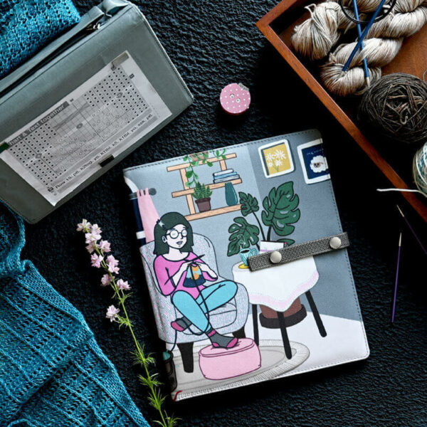 Podstawka pod wzory KnitPro Passion stworzona została z myślą o podtrzymanie wzorów podczas pracy nad projektem. Ustawienie jej pod różnym kątem umożliwia łatwe odczytanie notatek, które ochroni twarda oprawa. Stojak wyposażony w zatrzaskowe zamknięcie, które zapewnia bezpieczne przechowywanie wzorów. Silne magnesy utrzymają niejeden wzór, a długi pasek magnetyczny może pełnić rolę przesuwanej linijki. Druga ściana podstawki wyposażona w kieszeń i długopis oraz kieszeń zamykaną na zamek. Stojak z zewnątrz obszyty białym płótnem ze wzorem, dodającym całości elegancji. Producent na etykiecie podaje, że stojak w pozycji otwartej ma wymiary 50,0 cm x 30,0 cm, natomiast złożony 25,0 cm x 30,0 cm. Po wymierzeniu podstawki w rzeczywistości w pozycji otwartej ma wymiary 52,0 cm x 30,0 cm, natomiast w pozycji zamkniętej 26,0 cm x 30,0 cm.