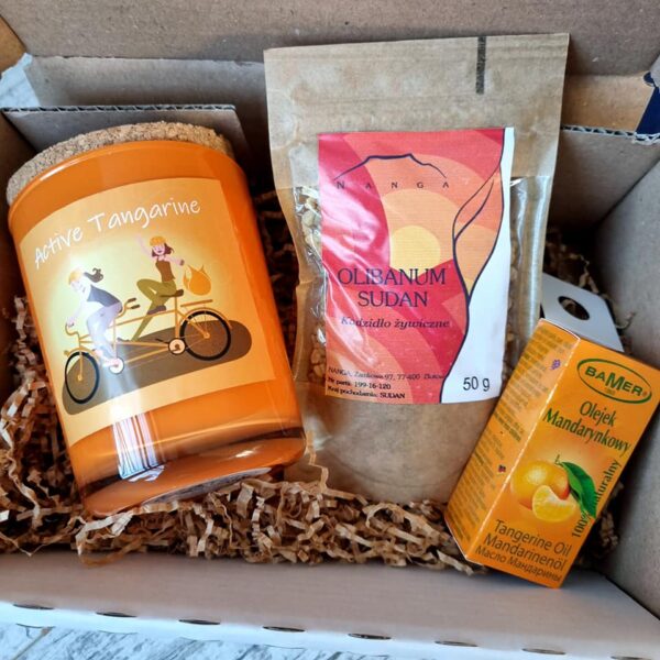 Zestaw Prezentowy Świeca Sojowa Active Tangerine z Kadzidłem i Kompozycją Zapachową