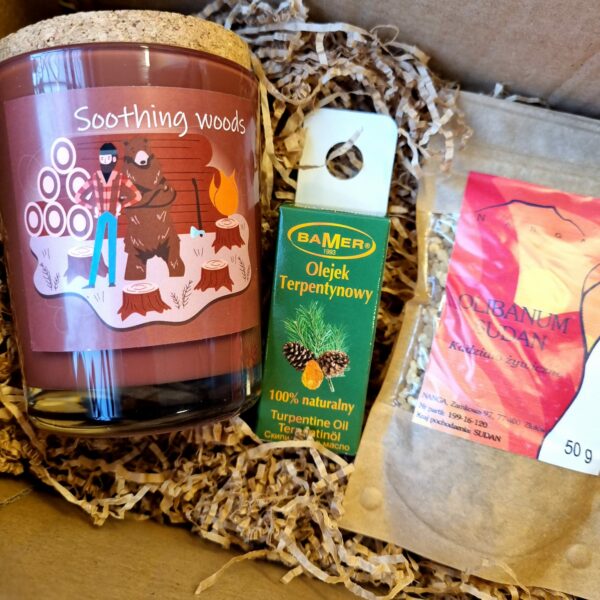 Zestaw Prezentowy Świeca Soothing Woods z Kadzidłem i Kompozycją Zapachową