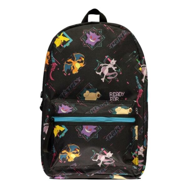 Dane: Materiał: 100% poliester, Wymiary: ok. 45 x 28 x 10 cm, Regulowane ramiona, Wyściełane, miękkie plecy pokryte siateczką, W głównej komorze plecaka znajduje się zapinana kieszeń o wymiarach 43 x 29 cm, przeznaczona na laptop, Na froncie plecaka znajduje się mniejsza kieszeń o wymiarach: 20 x 26 cm, Plecak posiada uszko do zawieszenia np. na haczyku szkolnej ławki. Kolorowy plecak Pokémon z neonowym zamkiem błyskawicznym na froncie, dzięki któremu zaprezentujesz towarzystwu wszystkie swoje ulubione postacie z tego anime: na plecaku znajdują się Snorlax, Pikachu, Metwo i innekultowego Pokémony! Regulowane ramiona plecaka zostały wykończone logo Pokémon na pasku. Wyściełana kieszeń na laptopa o przekątnej 17 cali i dodatkowa kieszeń na froncie plecaka zapinana na zamek błyskawiczny pomogą Ci zorganizować wszystkie niezbędne przedmioty, które będziesz chciał zabrać ze sobą z domu w tym pojemnym plecaku. Oryginalny produkt na licencji Pokémon™, wykonany przez Difuzed™.