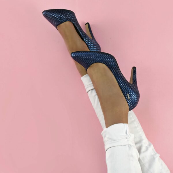 szpilki - skóra naturalna - model 035 - kolor niebieska plecionka