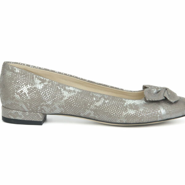 wężowe balerinki z kokardką - skóra naturalna - model 048 - kolor szary wąż