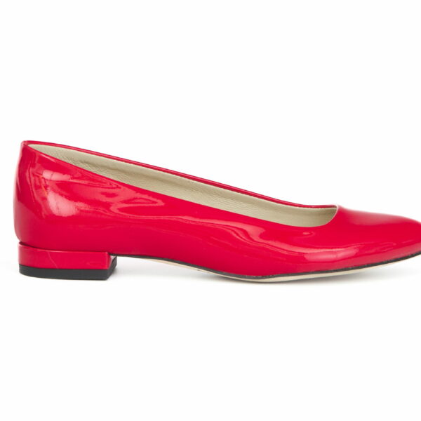 klasyczne lakierowane balerinki na niskim obcasie - skóra naturalna - model 050 - kolor czerwony lakier