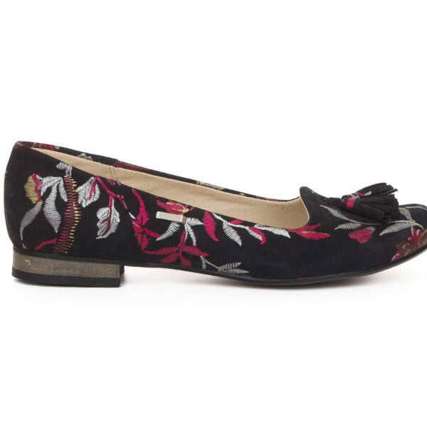klasyczne baleriny z frędzlami - skóra naturalna - model 009 – czerwone kwiaty