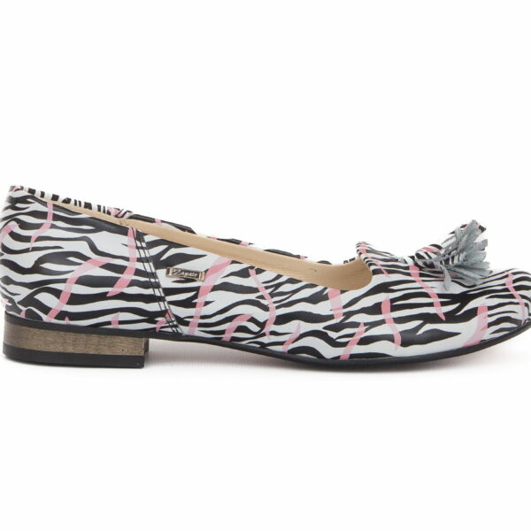 klasyczne baleriny z frędzlami - skóra naturalna - model 009 - kolor zebra z różem