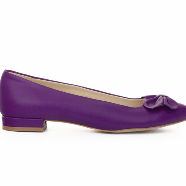 balerinki z kokardką - skóra naturalna - model 048 - kolor fioletowy lico