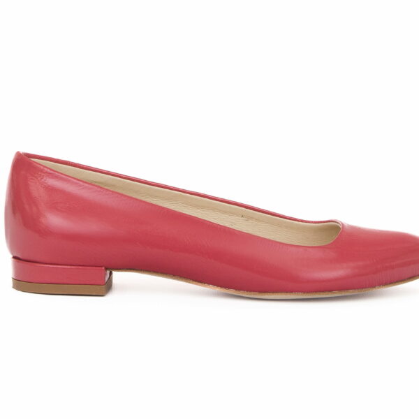 gładkie balerinki na niskim obcasie - skóra naturalna - model 050 - kolor czerwony retro