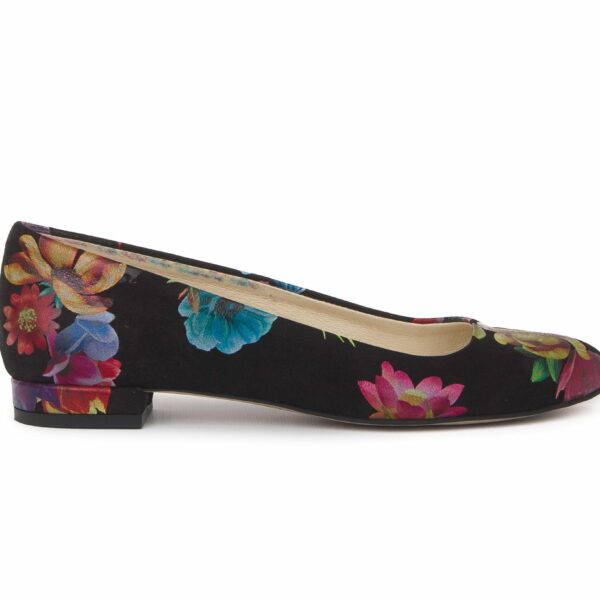 balerinki na niskim obcasie - skóra naturalna - model 050 - kolor kolorowe kwiaty