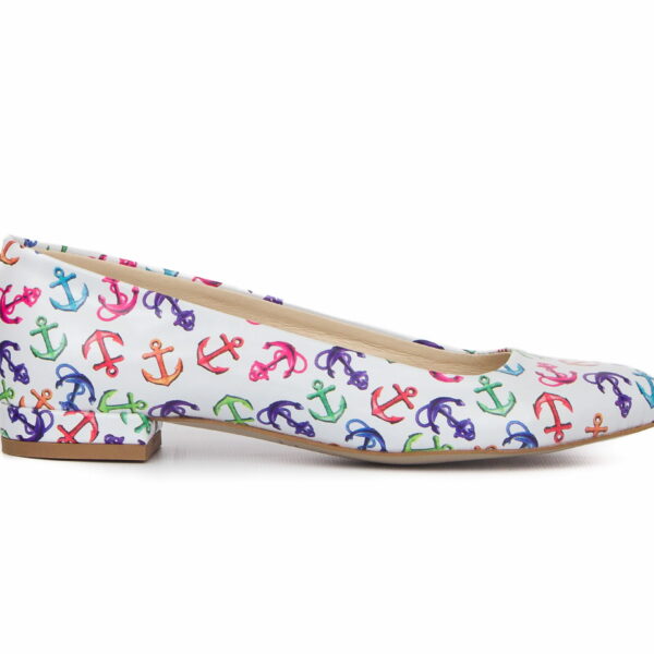 balerinki na niskim obcasie - skóra naturalna - model 050 - kolor kotwice