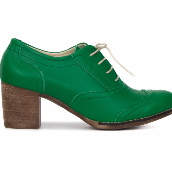 sznurowane półbuty na 6 cm słupku - skóra naturalna - model 251 - kolor malachitowy