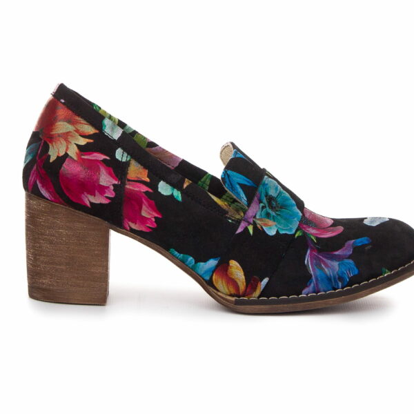 kolorowe półbuty na 6 cm słupku - skóra naturalna - model 250 - kolor kolorowe kwiaty