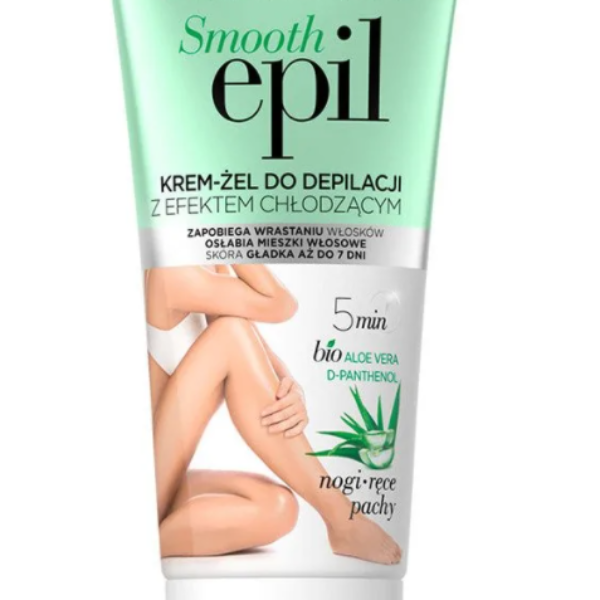 Eveline Smooth Epil Krem Żel Do Depilacji Z Efektem Chłodzącym 175ML Unikalna i delikatna formuła z dodatkowym efektem przyjemnego chłodzenia sprawia, ze wszelkie podrażnienia są zniwelowane, a skóra pozostaje idealnie gładka i miękka w dotyku. BIOaloes i D-panthenol o działaniu łagodzącym i nawilżającym, dodatkowo przyspieszają regeneracją naskórka. Delikatna formuła zapewnia skuteczna depilacje, nie zostawiając tłustej warstwy na powierzchni skóry. Wyselekcjonowana kompozycja zapachowa sprawia, ze zabieg staje się przyjemnością.osłabia mieszki włosowezapobiega wrastaniu włoskówskóra gładka aż do 7 dniStosowanie:Używając szpatułki rozprowadź preparat równą warstwą na tych partiach ciała, z których chcesz usunąć włoski. Nie wcieraj.Pozostaw na skórze na 5 minut, następnie za pomocą szpatułki delikatnie usuń krem z niewielkiego fragmentu skóry. Jeśli włoski łatwo schodzą ze skóry, usuń resztę kremu szpatułka, w kierunku „pod włos”. Jeśli włoski nie schodzą jeszcze łatwo, pozostaw krem na skórze, ale nie dłużej niż 10 minut od początku aplikacji. Czas działania kremu zależy od grubości włosa.Resztki depilatora można osunąć wilgotną gąbką, a następnie należy przemyć skórę ciepłą wodą (bez użycia mydła) i osuszyć.Środki ostrożności: Przed pierwszym użyciem preparatu należy wykonać test alergiczny: na niewielką powierzchnię skóry nanieść krem, odczekać kilka minut i zmyć. Jeśli w ciągu 24 godzin w miejscu aplikacji nie wystąpi reakcja uczuleniowa, możesz stosować krem. Przed upływem 24 godzin od depilacji nie używaj na miejsca depilowane dezodorantów i antyperspirantów. Unikaj kąpieli słonecznych.Środek silnie działający. Nie stosować na skórę podrażnioną, opaloną, z bliznami, znamionami, wypryskami i innymi zmianami skórnymi. Unikać kontaktu z błonami śluzowymi. Nie stosować do depilacji twarzy, głowy, piersi, okolic odbytu i genitaliów. Unikać kontaktu z oczami. W przypadku dostania się preparatu do oczu natychmiast przepłukać dużą ilością wody i skontaktować się z lekarzem. Zawiera tioglikolany. Stosować zgodnie ze sposobem użycia. Przechowywać w temperaturze pokojowej, z dala od źródła ciepła, chronić przed dziećmi.
