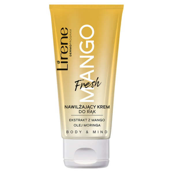 Lirene Body&Mind Mango Nawilżający Krem Do Rąk 50ML Nawilżający krem do rąk Fresh Mango głęboko nawilża i odżywia już przy pierwszej aplikacji. Chroni skórę przed utratą wody, zapewniając zdrowy wygląd, gładkość i miękkość. Szybko się wchłania pozostawiając soczysty, owocowy zapach. Idealny dla suchej skóry. Zawiera 94 % składników pochodzenia naturalnego. Produkt wegański. Ekstrakt z mango wiąże wodę w naskórku zapobiegając jej ucieczce. Olej Moringa pomaga utrzymać właściwy poziom wody w naskórku. Alantoina przynosi ukojenie przesuszonej skórze.testowany dermatologicznienawilżeniemiękkośćwygładzeniekażdy rodzaj skórySposób użycia: Dokładnie wmasuj krem w umytą i osuszoną skórę dłoni. Stosuj kilka razy dziennie.