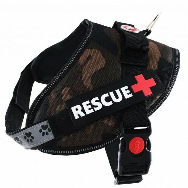 Mocne szelki dla psa - uprząż terningowa RESCUE+- wytrzymały na zarysowania materiał zewnętrzny - nylon- oddychająca wyściółka wewnętrzna zapewni komfort użytkowania nawet w cieplejsze dni- konstrukcja "V" kształtna szelek powoduje równomierny rozkład sił i bardzo stabilne mocowanie- pasek odblaskowy z nadrukiem dla poprawy bezpieczeństwa- napis RESCUE zapinany na rzep, dzięki czemu możemy zamontować w tym miejscu dowolny inny napis (np. imię psa i numer telefonu ), lub pozostawić to pole bez napisu. Na popularnych serwisach aukcyjnych można znaleźć firmy, które produkują takie napisy na rzep według indywidualnego projektu.Idealny rozmiar napisu dla szelek XS, S: 10x3cm, M: 12x4cm, L, XL, XXL: 13x5cm- wygodna regulacja i zapinanie - pas brzuszny regulowany za pomocą plastikowej klamry , pas piersiowy regulowany za pomocą rzepu . Szybkie zapinanie za pomocą plastikowej klamry , pas piersiowy regulowany za pomocą rzepu- Szybkie zapinanie za pomocą zatrzasku.