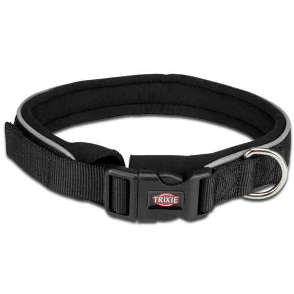 Obroża Premium z neoprenowym obiciemWysokiej jakości pasek nylonowyIdealna dystrybucja nacisku, dzięki szerokiej wersjiKomfortowa w noszeniu, dzięki podbiciu z neoprenuRegulowana, dzięki rzepomZ elementami odblaskowymiWymiary: 55-61 cm/30 mm