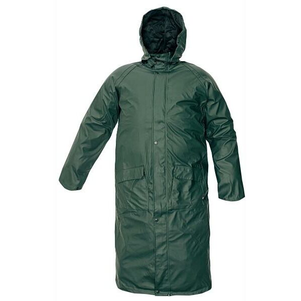 Płaszcz przeciwdeszczowy CERVA SIRETWodoodporny i wiatroszczelny płaszcz przeciwdeszczowy z kapturem chowanym w kołnierzu.Powleczony poliuretanem zabezpieczającym przed deszczem lub wilgocią z zewnątrz.Porowatość struktury materiału powlekającego zapewnia odprowadzenie wilgoci i potu z ciała.Mankiety z regulacją szerokości na zatrzaski.Kaptur wyposażony w regulację za pomocą sznurków.Norma EN 343 potwierdza wodoszczelność materiału.Długość: 120 cm.Skład: 100% poliester pokryty poliuretanem.Kolory: zielony, granatowy, niebieski, żółty.Zgodność z rozporządzeniem UE 2016/425 w sprawie środków ochrony indywidualnej EN ISO 13688:2013 Ogólne wymogi dotyczące odzieżyEN 343 Odzież chroniąca przed opadami atmosferycznymi 3 Wodoszczelność (od 1 do 3) 1 Przenikanie pary wodnej (od 1 do 3)Jednostka sprzedaży: 1 sztuka.