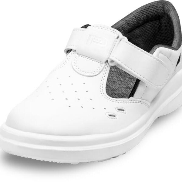 Białe sandały ochronne PANDA SANITARY LYBRA S1 SRCSandały ochronne z metalowym podnoskiem odpornym na uderzenia 200 J.Idealna równowaga między odpornością, a lekkością połączona z nieustannym poczuciem higieny i świeżości.Stopy w tych butach będą suche i chronione przed drobnoustrojami i bakteriami dzięki wyściółce z powłoką antybakteryjną Sanitized®.Buty można łatwo i skutecznie prać w pralce.Cholewka wykonana z mikrowłókna. Przewiewna podszewka z zabezpieczeniem antybakteryjnym SANITIZED.Antystatyczna i antypoślizgowa podeszwa z poliuretanu PU.Zamknięta pięta.Amortyzacja energii części piętowej. Kolor: biały.Zgodność z rozporządzeniem UE 2016/425 w sprawie środków ochrony indywidualnej EN ISO 20345 Wymagania dotyczące obuwia bezpiecznego S1 Wymagania podstawowe + zamknięta pięta + antyelektrostatyczność + podeszwa odporna na węglowodory + absorbcja energii w obszarze pięty SRC Odporność na poślizg na różnych podłożach Jednostka sprzedaży: 1 para.