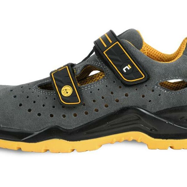Sandały ochronne CERVA YUWILL MF ESD S1P SRCBezpieczne sandały ESD z kompozytowymi podnoskiem i wkładką antyprzebiciową.Oddychająca cholewka wykonana z wysokiej jakości skóry nubukowej.Przewiewna podszewka z siatki poliestrowej.Antystatyczna i antypoślizgowa dwuwarstwowa podeszwa z poliuretanu PU/TPU. Jedna z warstw (TPU) jest miękka i elastyczna, aby zapewnić wyższy komfort użytkowania.Zamknięta pięta.Amortyzacja energii części piętowej. Kolor: szaro-żółty.Zgodność z rozporządzeniem UE 2016/425 w sprawie środków ochrony indywidualnej EN ISO 20345 Wymagania dotyczące obuwia bezpiecznego S1P Wymagania podstawowe + zamknięta pięta + antyelektrostatyczność + podeszwa odporna na węglowodory + absorbcja energii w obszarze pięty + odporność podeszwy na przebicie SRC Odporność na poślizg na różnych podłożachEN 61340-5-1:2016 Ochrona przed zjawiskami elektrostatycznymiJednostka sprzedaży: 1 para.