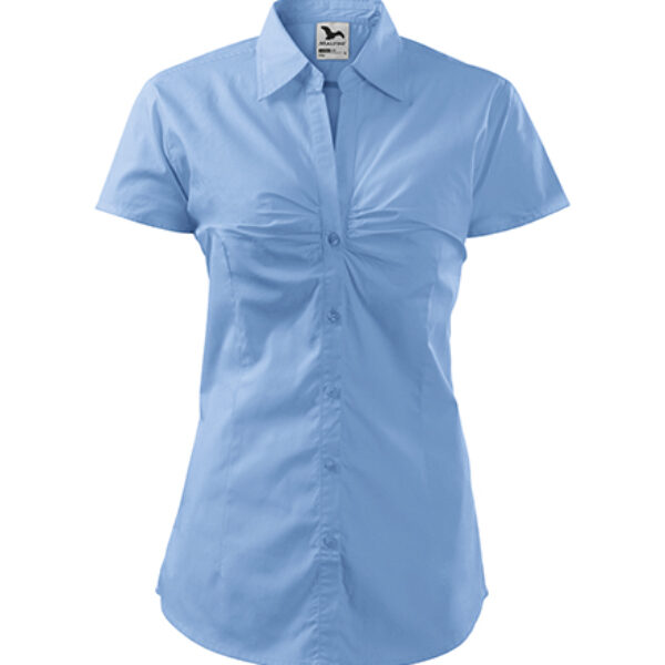 Koszula damska Malfini ChicDamska koszula z krótkim rękawem.pojedynczy karczek i zaszewki z tyłu,zaszewki w pasie,ozdobne falbanki na klatce piersiowej,dwuczęściowy kołnierzyk koszuli w szpicę,części przednie wykończone plisą,guziki w kolorze materiału (1 zapasowy),zaokrąglony dół,tkanina: Popelina, 100% bawełna, 120 g/m².Jednostka sprzedaży: 1 sztuka.
