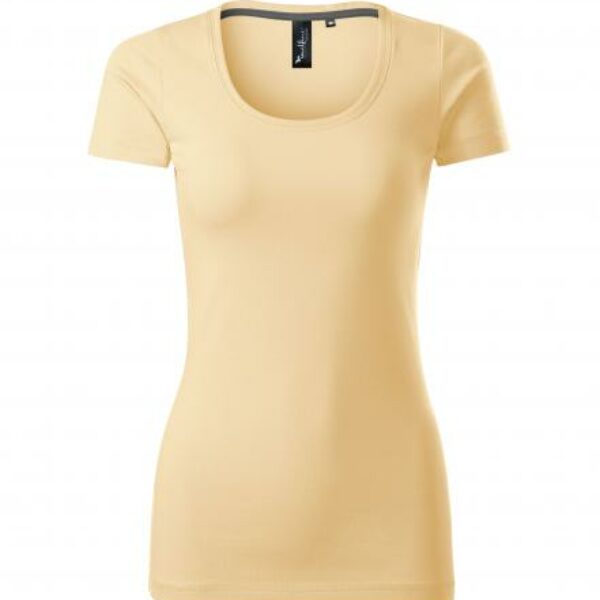 Koszulka damska Actionelastyczny materiał utrzymujący kształtkrój slim-fit ze szwami bocznymiszersza okrągła lamówkaozdobne szwywąska lamówka z dzianiny ściągaczowej 1:1 z dodatkiem 5 % elastanulamówka na karku wzmocniona kontrastową taśmąszew wzmacniający na ramionachkrótkie, dopasowane rękawySingle Jersey, 95% bawełna, 5% elastan 180 g/m²Jednostka sprzedaży: 1 szt.Opakowanie zbiorcze: 10 szt.