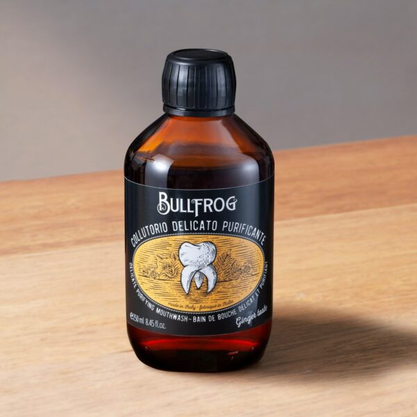 Delicate Purifying Mouthwash to coś więcej niż tylko środek do higieny jamy ustnej. Jest to produkt, który zmienia uniwersalne spojrzenie na mycie zębów i czyni pielęgnację jamy ustnej czymś wyjątkowym. Produkt marki Bullfrog jest bezalkoholowy i ma smak imbirowy.Pojemność: 250mlZapach: Lekki, orzeźwiający, imbirowy.Sposób użycia: Raz dziennie po umyciu zębów należy połowę "nakrętki" za każdym razem przepłukiwać przez około 0.5 – 1 minuty. Płynu do płukania nie należy połykać, po upływie wyznaczonego czasu należy go bowiem wypluć.Skład: Aqua, aroma, cxitrus paradisi seed extract, citrus paradisi grapefruit seed extract, ci 15985, ci 16255