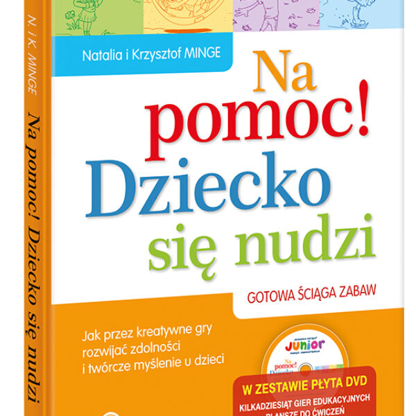 Jak przez kreatywne gry rozwijać zdolności i twórcze myślenie u dzieci. Gotowa ściąga zabaw.Poradnik z płytą DVD dla rodziców i opiekunów dzieci w wieku 4 - 9 lat. Jego pierwszym celem jest rozwijanie u dzieci takich cechy umysłu jak: pamięć, koncentracja, spostrzegawczość, umiejętności matematyczne, wyobraźnia przestrzenna, itd. Poradnik odwołuje się do załączonych do książki komputerowych gier edukacyjnych z serii Akademia Umysłu® JUNIOR. W książce znajdziecie ponad 100 pomysłów na zabawy z dziećmi w domu i na dworze. Część z nich tematycznie powiązana jest z załączonymi na płycie DVD programami, inne to po prostu szalone gry i zabawy dla dzieci oraz rodziców, które sprawią, że wspólne spędzanie czasu będzie niezapomnianą przygodą. Zadbacie o integrację rodzinną i wzmacnianie więzi z dzieckiem. Dzieci uwielbiają spędzać czas z rodzicami, pragną działać i dowiadywać się nowych rzeczy. Pragną się rozwijać i kochają się uczyć, zwłaszcza gdy mogą to robić w ciepłej rodzinnej atmosferze, w towarzystwie tych, których najbardziej kochają. Proponowane zabawy skłonią was do wspólnego przyglądania się światu, a także pomogą zapoznać dziecko z licznymi faktami dotyczącymi otaczającej rzeczywistości. A więc: wyłącz telewizor i do dzieła!Autorami książki są Natalia i Krzysztof Minge – psycholodzy specjalizujący się we wspomaganiu rozwoju intelektualnego najmłodszych dzieci, prowadzą poradnię dla rodziców Hipokampus.