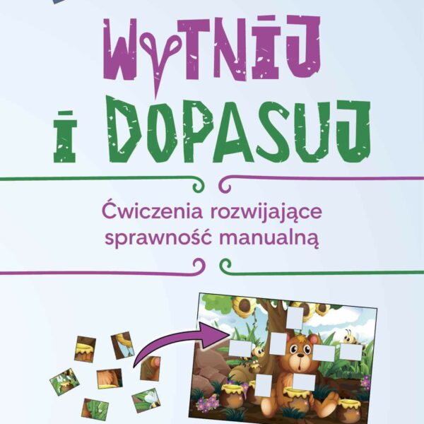 Wytnij i dopasuj to układanki rozwijające sprawność manualną i percepcję wzrokową. Posłużą uczniom klas I–III do pracy:na zajęciach korekcyjno-kompensacyjnych,na zajęciach plastycznych,w świetlicy,w domu.Kolejne układanki różnią się poziomem trudności.Ćwiczenia rozwijające sprawność manualnąJak korzystac z publikacji Wytnij i dopasuj?Dziecko wybiera z teczki dowolną układankę.Na kartach z puzzlami do wycięcia odnajduje właściwe elementy (jeśli ma trudności, dorosły może mu pomóc). Bardzo dokładnie rozcina odpowiedni fragment karty, aby uzyskać potrzebne puzzle.Układa puzzle na pustych miejscach na układance.Przykleja je w odpowiednich okienkach.Opowiada, co jest na powstałej ilustracji.