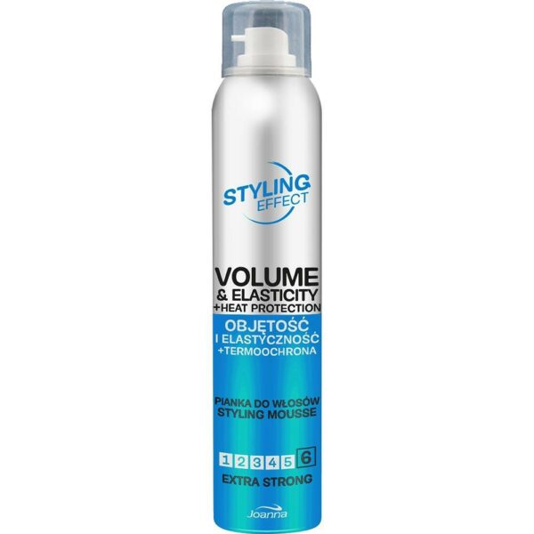 Joanna Styling Effect Ekstramocna Termoochronna Pianka Nadająca Włosom Objętość 150MLKażda z nas marzy o pięknie wyglądających oraz pełnych objętości włosach. Jeśli zmagasz się z problemem oklapniętych, pozbawionych blasku włosów, skończ z tym! Wypróbuj Joanna Styling Effect Objętość i Elastyczność! To niezbędny kosmetyk podczas zabiegów modelujących. Natychmiast pozwoli Tobie stworzyć upragnioną fryzurę i pozostawić ją nienaruszoną na długi czas. Z pewnością sprosta oczekiwaniom wielu konsumentek! Pianka do włosów Joanna Styling Effect Objętość i elastyczność:unosi włosy przy nasadzieuelastycznia kosmyki włosowezapewnia włosom niezawodną ochronę przed wysokimi temperaturamiwidocznie poprawia kondycję włosównie obciąża oraz nie skleja włosównadaje włosom witalność i promienny blask.Sposób zastosowania produktu: Piankę stosować można na 2 sposoby: na całość włosów lub jedynie u nasady w celu uzyskania efektu uniesienia.