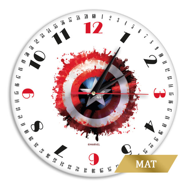 Zegar ścienny matowy Kapitan Ameryka 002 Marvel Biały