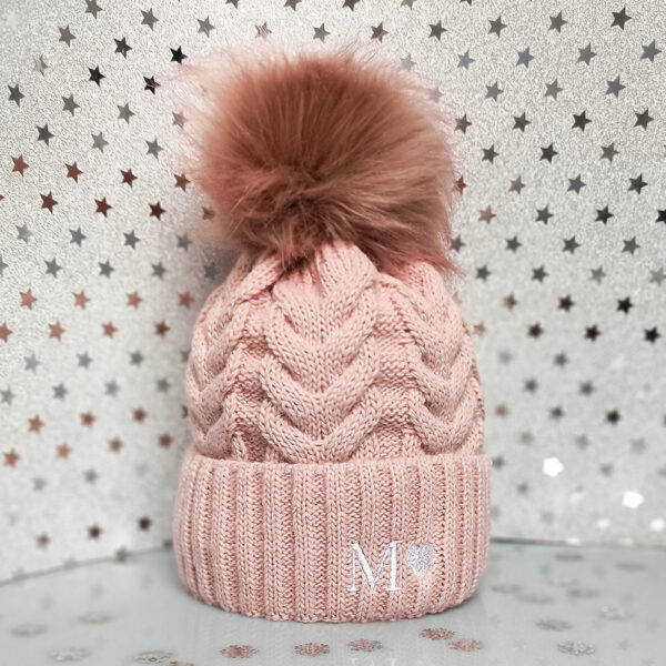 Czapka Winter Personalizowana Monogram 003 z białym haftem Babaco Różowy