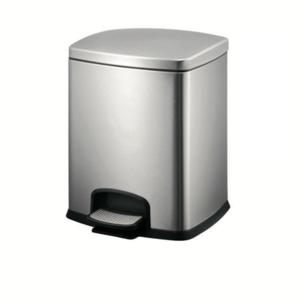 WYMIARY: 24,5 cm x 24 cm x 37 cmmateriał: wysokiej jakości stal nierdzewna z powłoką zapobiegającą zabrudzeniom oraz pozostawianiu śladów palców,wygodne, higieniczne otwieranie za pomocą przycisku pedałowego,wewnątrz wyjmowane wiadro z tworzywa,system wolno opadającej pokrywy powodujący wytłumienie dźwięku przy zamykaniu,bezpieczna dla podłogi podstawa zabezpieczona obręczą z tworzywa.