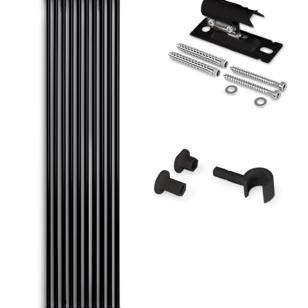 Vasco Ritmo V Zestaw 4 zawiera: Ritmo V-2K/65 grzejnik 45x180cm - 113530450180000999005-0000Konsola zaciskowa 30mm 2szt. - 118721100009005Uchwyt dystansowy 2szt. - 118720900009016Kolor zestawu czarny.