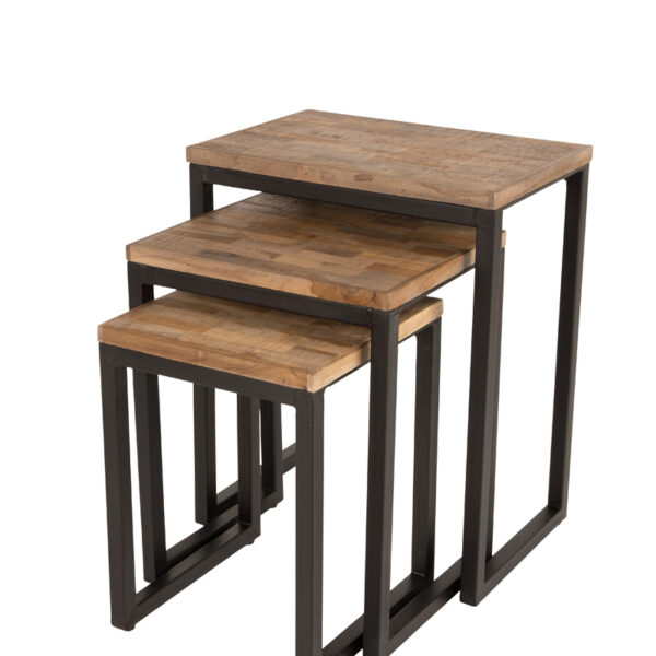Stolik SURI zestaw (3 szt.)20 mm blat z drewna tekowego z recyklinguNaturalne lakierowane (na bazie wody)Maksymalne obciążenie waga: 50 kgWymiary S: 46x31x57 cm (SxGxW)Wymiary M: 38x31x49 cm (SxGxW)Wymiary L: 31x31x42 cm (SxGxW)
